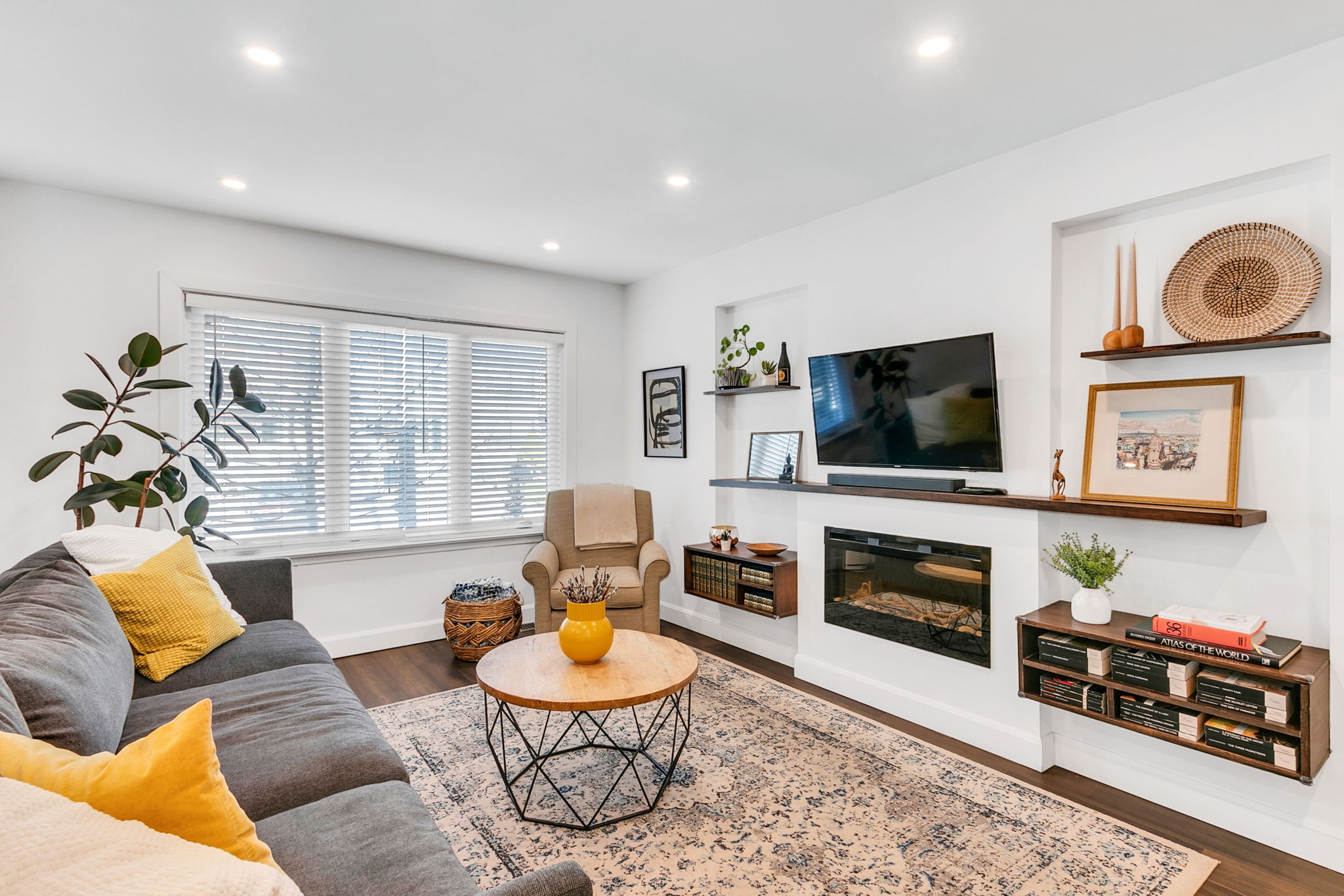 Enjoy a bright open-concept layout with new hardwood floors, spacious principal rooms, and a designer kitchen featuring a quartz waterfall island and stainless steel appliances—perfect for everyday living and entertaining. The elegant living room is anchored by a new electric fireplace and custom built-in shelving, while the sun-drenched family room, a rare feature, includes a stylish 2-piece powder room and walkout to a custom two-tier deck overlooking beautifully landscaped gardens.